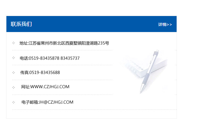 地址:常州市新北區(qū)友邦商務(wù)大廈1幢16、17層  電話:0519-85101652  傳真:0519-85112595  郵編:213022  網(wǎng)址:www.cz-jiayue_cn.lcjsxx.com  郵箱:xiajifengaa@163.com
